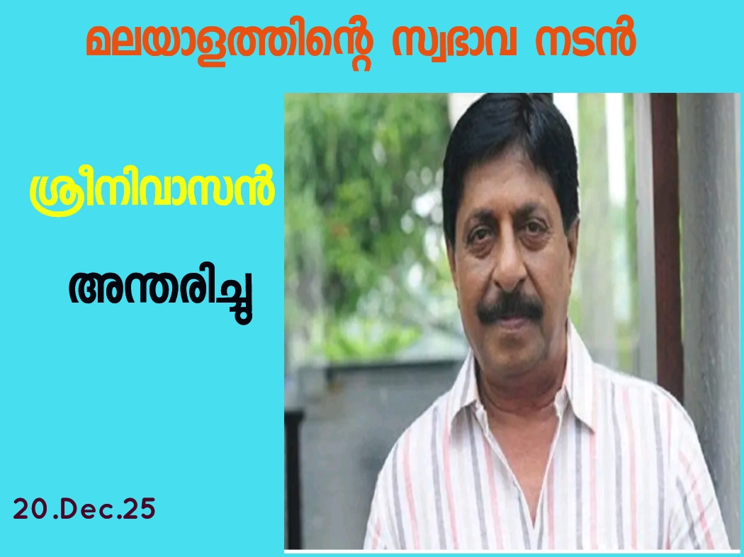 കൊച്ചി :മലയാള ചലച്ചിത്ര ലോകത്തെ അതുല്യ പ്രതിഭയും നടനും തിരക്കഥാകൃത്തും സംവിധായകനുമായ ശ്രീനിവാസൻ (69) കൊച്ചിയിലെ സ്വകാര്യ ആശുപത്രിയിൽ വെച്ച് അന്തരിച്ചു. വാർദ്ധക്യസഹജമായ അസുഖങ്ങളെ തുടർന്ന് ദീർഘകാലമായി ചികിത്സയിലായിരുന്ന അദ്ദേഹത്തിന്റെ അന്ത്യം ഇന്ന് പുലർച്ചെയായിരുന്നു. 1976-ൽ പി.എ. ബക്കറുടെ ‘മണിമുഴക്കം’ എന്ന ചിത്രത്തിലൂടെ അഭിനയരംഗത്തെത്തിയ ശ്രീനിവാസൻ, പിന്നീട് തന്റെ തനതായ ശൈലിയിലുള്ള സംഭാഷണങ്ങളിലൂടെയും സാമൂഹിക പരിഹാസത്തിലൂടെയും (Sarcasm) മലയാളികളുടെ പ്രിയങ്കരനായി മാറി. ‘സന്ദേശം’, ‘നാടോടിക്കാറ്റ്’, ‘വരവേൽപ്പ്’, ‘മിഥുനം’ തുടങ്ങി രാഷ്ട്രീയവും സാമൂഹികവുമായ വിഷയങ്ങൾ ഹാസ്യത്തിന്റെ അകമ്പടിയോടെ അവതരിപ്പിച്ച അദ്ദേഹത്തിന്റെ തിരക്കഥകൾ മലയാള സിനിമയിലെ ക്ലാസിക്കുകളായി ഇന്നും നിലകൊള്ളുന്നു. സംവിധായകൻ എന്ന നിലയിൽ ‘വടക്കുനോക്കിയന്ത്രം’, ‘ചിന്താവിഷ്ടയായ ശ്യാമള’ എന്നീ സിനിമകളിലൂടെ സംസ്ഥാന-ദേശീയ പുരസ്കാരങ്ങൾ അദ്ദേഹം കരസ്ഥമാക്കിയിട്ടുണ്ട്. ദാസൻ-വിജയൻ കൂട്ടുകെട്ടിലെ വിജയനായും തളത്തിൽ ദിനേശനായും ലാലൻ പനയ്ക്കലായും വേഷമിട്ട് പ്രേക്ഷകരെ ചിരിപ്പിക്കുകയും ചിന്തിപ്പിക്കുകയും ചെയ്ത ആ കാലഘട്ടം ഇതോടെ ഓർമ്മയാവുകയാണ്. വിമലയാണ് ഭാര്യ. പിന്നണി ഗായകനും നടനുമായ വിനീത് ശ്രീനിവാസൻ, നടൻ ധ്യാൻ ശ്രീനിവാസൻ എന്നിവർ മക്കളാണ്. ശ്രീനിവാസന്റെ വിയോഗം മലയാള ചലച്ചിത്ര മേഖലയ്ക്ക് നികത്താനാവാത്ത നഷ്ടമാണ് ഉണ്ടാക്കിയിരിക്കുന്നത്.