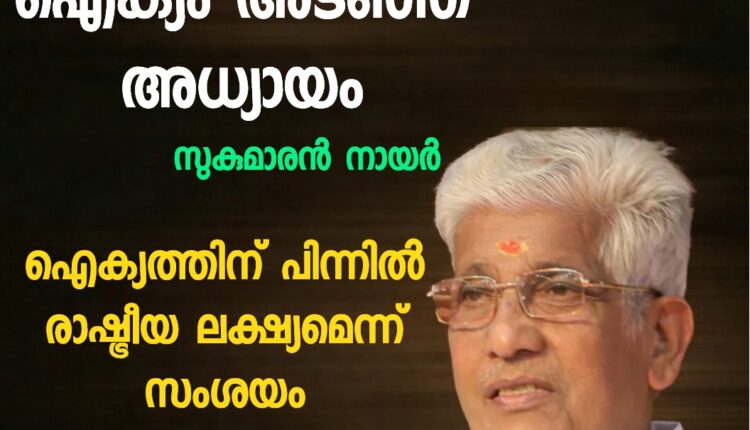 എസ്.എൻ.ഡി.പി യുമായുള്ള ഐക്യനീക്കത്തിൽ നിന്ന് എൻ.എസ്.എസ് പിൻമാറി; പിന്നിൽ രാഷ്ട്രീയ ലക്ഷ്യങ്ങളെന്ന് സുകുമാരൻ നായർ